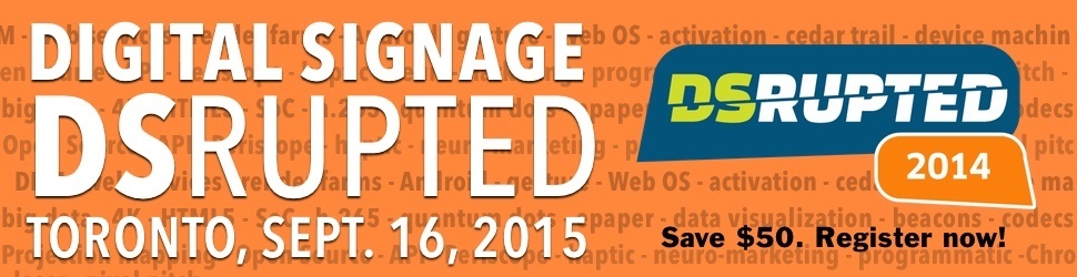 DSrupted: Why You Should Attend – Reason #1 July 13, 2015 by Super User DSrupted is a conference I am running – all day Sept. 16th in downtown Toronto – focused on the disruptive technology that is or will be changing the way digital signage gets done. Here’s the first of a week-long series of reasons why – whether you are in or around Toronto, or further afield – you …