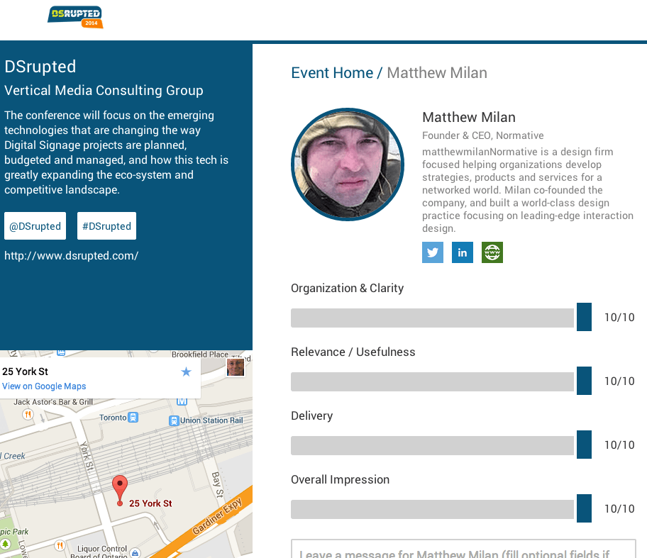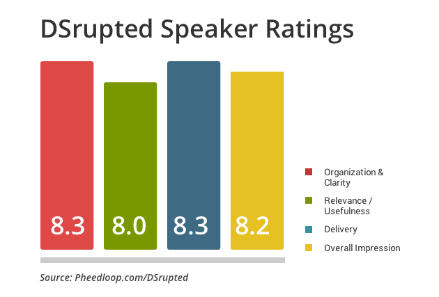 DSrupted Speaker Ratings September 22, 2014 by Super User One of the tools used last week at DSrupted was a real-time speaker rating web app called Pheedloop, which is the product of a local Toronto start-up. They approached me with a template that was ready to go, and for all of $50, I gave it a crack. It was cool, and beat the crap …