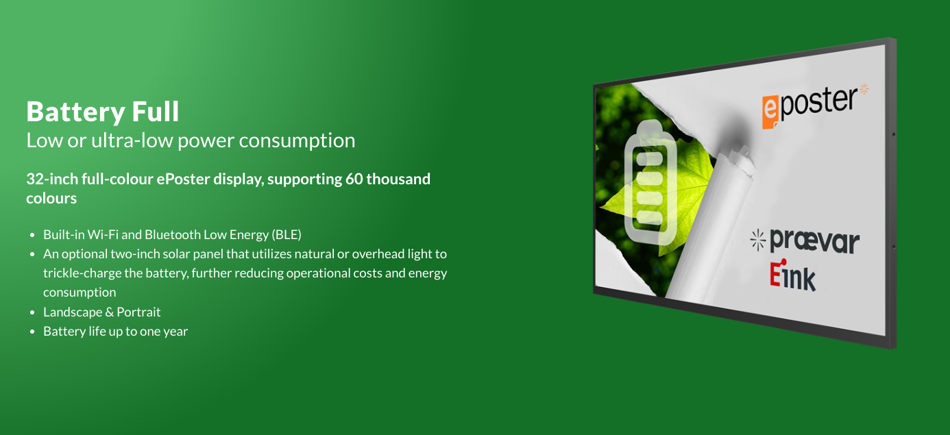 Specialty Display Firm Praevar, Best Known For High-Bright LCDs, Goes Green With E Ink Posters October 22, 2024 by Super User A Toronto company known very much for its high-brightness outdoor LCD displays has taken a distinct pivot into e-paper poster displays that consume a fraction of the power. The specialty display manufacturer Praevar has started marketing a 32-inch ePoster based around the E Ink Spectra 6 display, aiming the product at indoor advertising and retail …