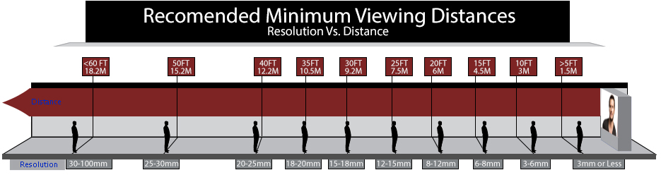 The Rule Of Thumb For Direct-View LED Viewing Distances Is All Over The Place September 29, 2017 by Super User So what is the real rule of thumb for viewing distances for direct view, fine pitch indoor LED displays? I thought it was 10 feet for every 1.0mm pitch, 15 for 1.5mm, 20 for 2.0mm and so on, and have certainly seen that used. But … Christie’s rule of thumb is 8 – meaning you multiply …
