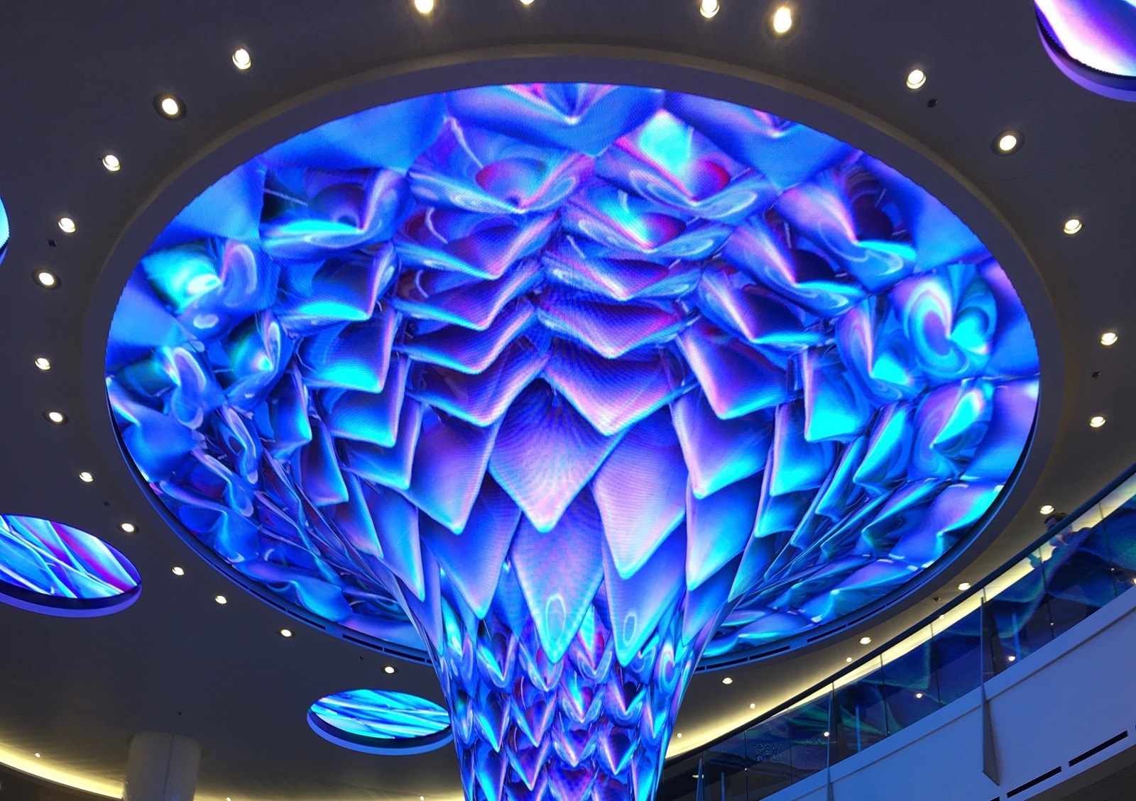 Cruise Line Uses 25-Foot LED Vortex As Centerpiece September 6, 2017 by Super User Here’s an interesting example of how three-dimensional visuals and crazy idea can be baked into content and served up on a very unusual display canvas – in this case the central court of a monster cruise ship. This is a 25 foot tall vortex-shaped LED column in the atrium of the Carnival Vista, a ship …