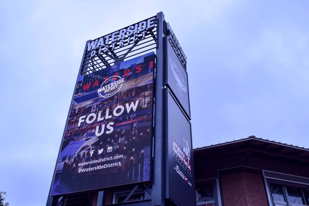 Projects: Two LED Towers Go Up In Norfolk’s Revitalized Waterside District August 7, 2017 by Super User Here’s a nice example of a mixed media digital and analog signboard, one of two put up in the revitalized Waterside District in Norfolk, Virginia. The 23-foot-high boards are 10mm pitch units done by SNA Displays. “This was an interesting and rewarding project for us,” says Jason Helton, executive vice president for SNA Displays. “The client …