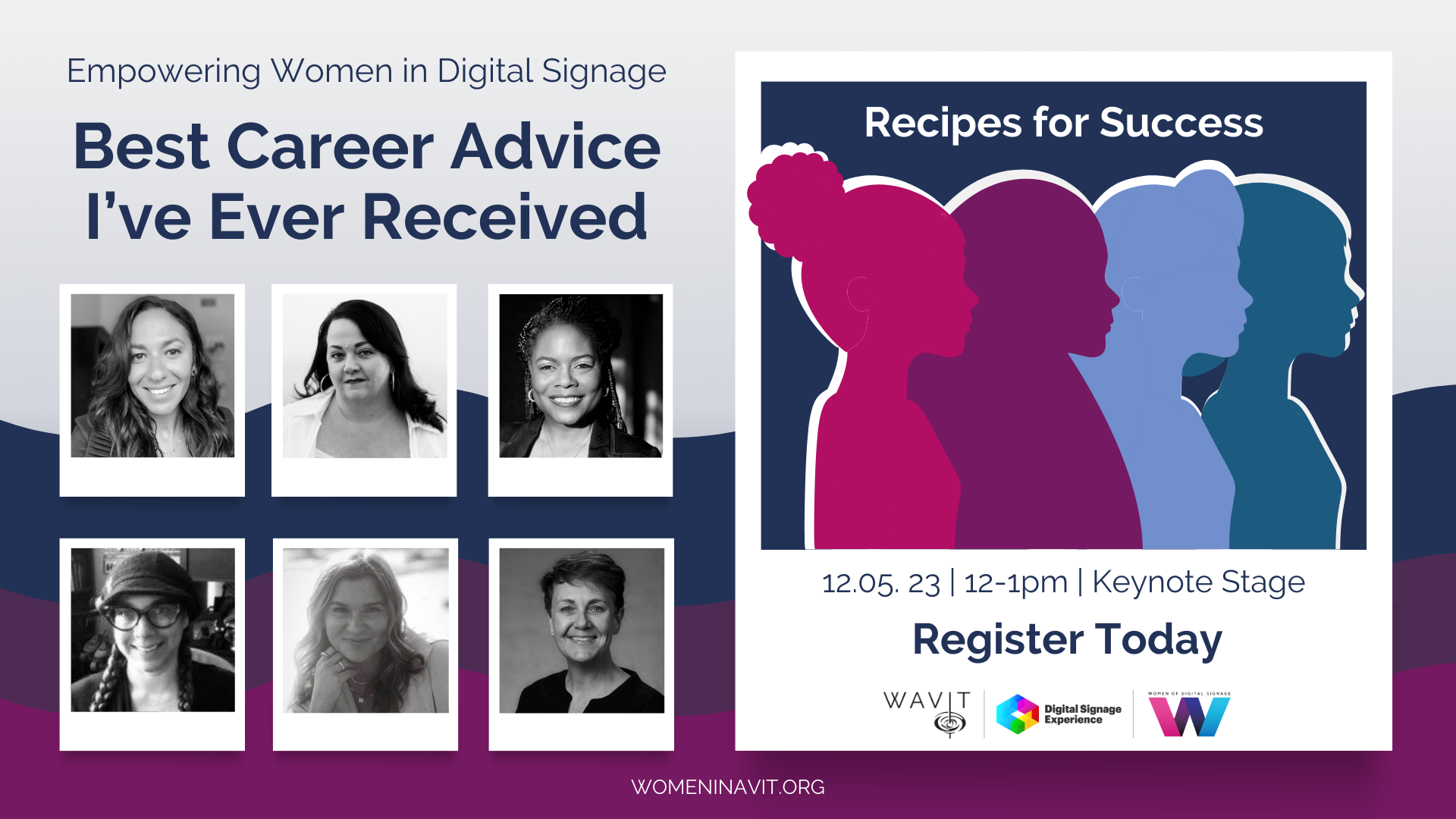 Women In AV/IT Running Career Advice Luncheon Dec. 5th At DSE November 13, 2023 by Super User The non-profit group Women in AV/IT (or WAVIT) has organized a luncheon during Digital Signage Experience (DSE) next month that looks at “Empowering Women in Digital Signage: Best Career Advice I’ve Ever Received.” The event is set for Tuesday, Dec. 5th at noon at the Keynote Stage during DSE. From PR: The luncheon aims to …